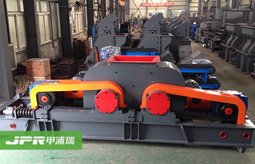 該系列重型對輥式破碎機(jī),主要由輥輪、輥輪支撐軸承、壓緊和調(diào)節(jié)裝置以及驅(qū)動裝置等部分組 成。出料粒度的調(diào)節(jié):兩輥輪之間裝有楔形或墊片調(diào)節(jié)裝置,楔形裝置的頂端裝有調(diào)整螺栓,當(dāng)調(diào)整螺栓將楔塊向上拉起時,楔塊將活動輥輪頂離固定輪。重型對輥 式破碎機(jī)將破碎物料經(jīng)給料口落入兩輥子之間,進(jìn)行擠壓破碎,成品物料自然落下。遇有過硬或不可破碎物時,重型對輥式破碎機(jī)的輥子可憑液壓缸或彈簧的作用自 動退讓,使輥子間隙增大,過硬或不可破碎物落下,從而保護(hù)機(jī)器不受損壞。相向轉(zhuǎn)動的兩輥子有一定的間隙,改變間隙,即可控制產(chǎn)品大排料粒度。