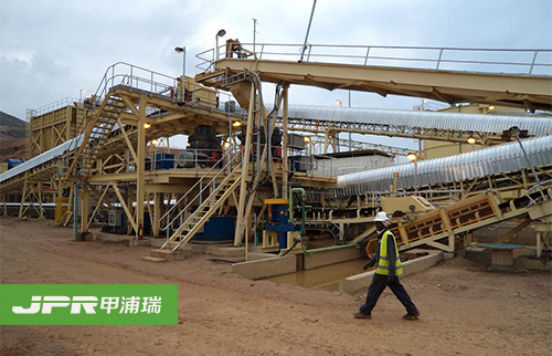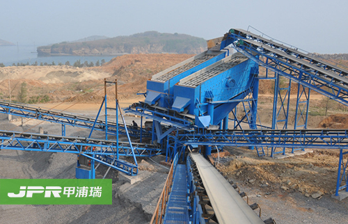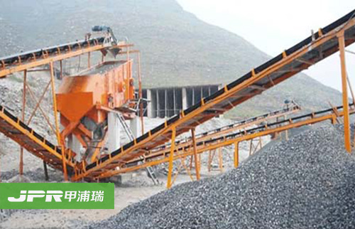 碎石生產(chǎn)線主要由振動(dòng)給料機(jī)、顎式破碎機(jī)、反擊式破碎機(jī)、振動(dòng)篩、膠帶輸送機(jī)、集中電控等設(shè)備組成。為滿足客戶不同的加工需要,可配備圓錐式破碎機(jī)、除塵 設(shè)備等。大塊石料經(jīng)料倉(cāng)由振動(dòng)給料機(jī)均勻地送進(jìn)鄂式破碎機(jī)進(jìn)行粗碎,粗碎后的石料由膠帶輸送機(jī)送到反擊式破碎機(jī)進(jìn)行進(jìn)一步破碎;細(xì)碎后的石料由膠帶輸送機(jī) 送進(jìn)振動(dòng)篩進(jìn)行篩分,篩分出幾種不同規(guī)格的石子,滿足粒度要求的石子由成品膠帶輸送機(jī)送往成品料堆;不滿足粒度要求的石子由膠帶輸送機(jī)返料送到反擊式破碎 機(jī)進(jìn)行再次破碎,形成閉路多次循環(huán)。成品粒度可按照用戶的需求進(jìn)行組合和分級(jí),為保護(hù)環(huán)境,可配備輔助的除塵設(shè)備。